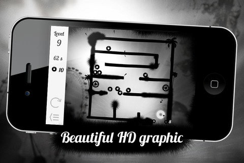 游戏的目的说起来很简单,就是操作毛球移动到指定位置,但是随着关卡的深入,你会发现原来站着说话腰真是不会疼的......某些关卡会出现特殊的机关,例如一个黑色疑似电锯的装置,要是玩家不慎让毛球滚了过去,毛球就会被切碎导致游戏失败。还有一些关卡,会同时出现两个白色光圈,光圈旁边写有数字,我们需要控制对应数量的毛球进入(过多会影响评价,过少游戏失败),这无疑增加了游戏难度。而同时出现电锯和多重光圈的关卡,玩家们只有不断地摇啊摇啊摇啊......长时间的游戏玩家最好能休息一下,否则也许会腰酸背痛腿抽筋的话就怪不得小编了,同时黑白的画面看久了也会比较伤眼。