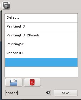 当你配置好比较满意的工作区后,你可以在“选择工作区”内保存它。你可以在笔刷工具条(通过“设置 > 显示工具条”开启显示)的右侧找到“选择工作区”。其中有对工作区的不同配置,当然你也可以创建自己的配置(图 2)。