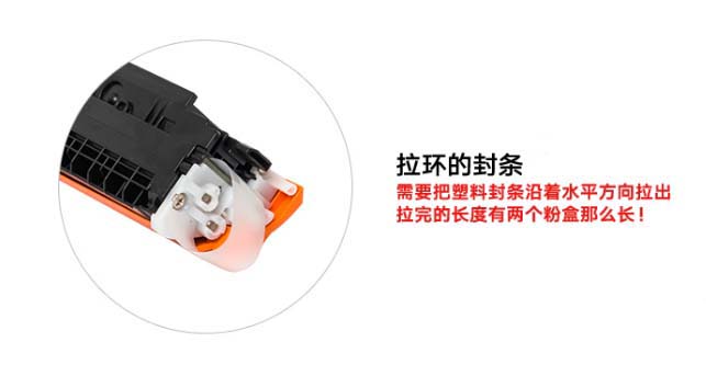 6、卸下加粉胶盖 加入相应型号的碳粉。将供粉件和废粉收集件按拆开时位置安装复原,插好两侧金属卡销。硒鼓装好后,应推开感光鼓挡板,向上轻转鼓芯侧面齿轮数圈,鼓面残留墨粉即被清除,装机即可使用。 复原硒鼓 加粉完毕。